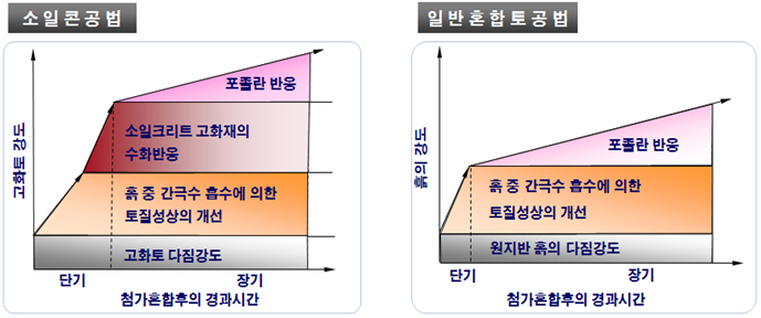 대상토질에 따라 시멘트, 석회, 석고, 포졸란계, 무기염류 등을 최적으로 조합시킨 소일크리트 고화재를 이용하여 기존혼합토 공법의 문제점을 개선하고 경제적으로 liner, wall, road 등 공사에 사용되는 공법임.
