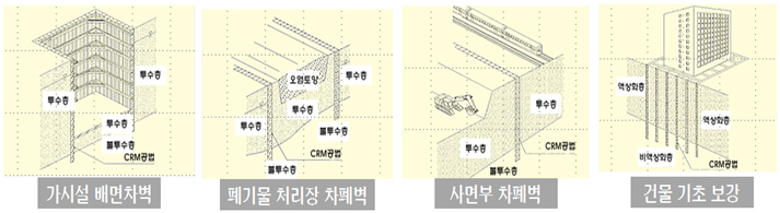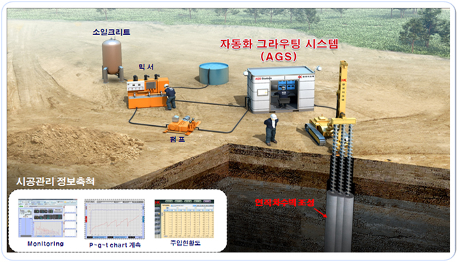 CRM공법은 오거 장비를 사용, 소일크리트 고화재와 원위치토 및 배출 이수를 혼합하여 지중에 기둥을 조성하고 AGS를 적용하여 투입된 고화재량을 실시간으로 정산할 수 있고 개량체에 대한 충전도 관리를 통해 '설계치±오차범위' 로 관리할 수 있으므로 균질하게 기둥을 조성할 수 있는 신뢰성이 높은 지반개량 공법임.